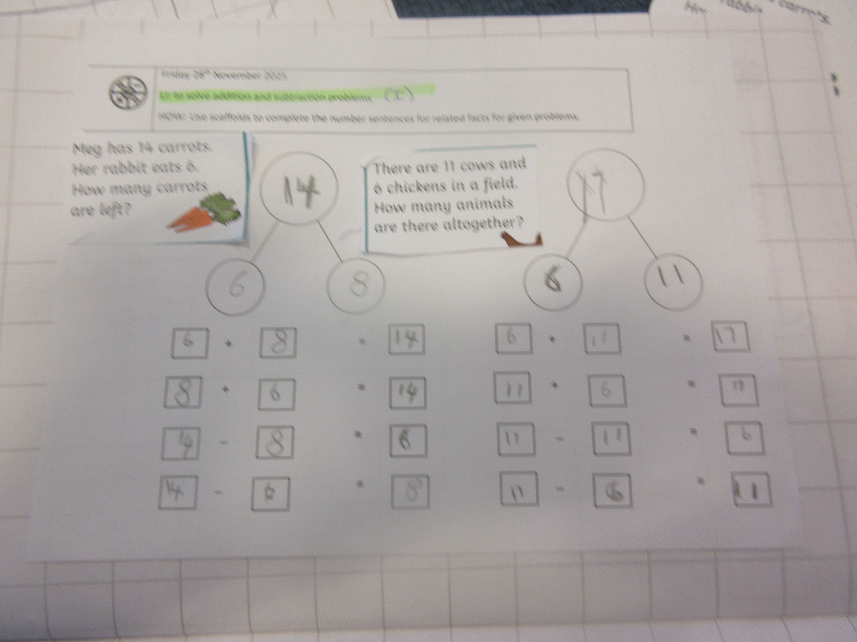 We have been exploring addition, subtraction and fact families in Maths this week.