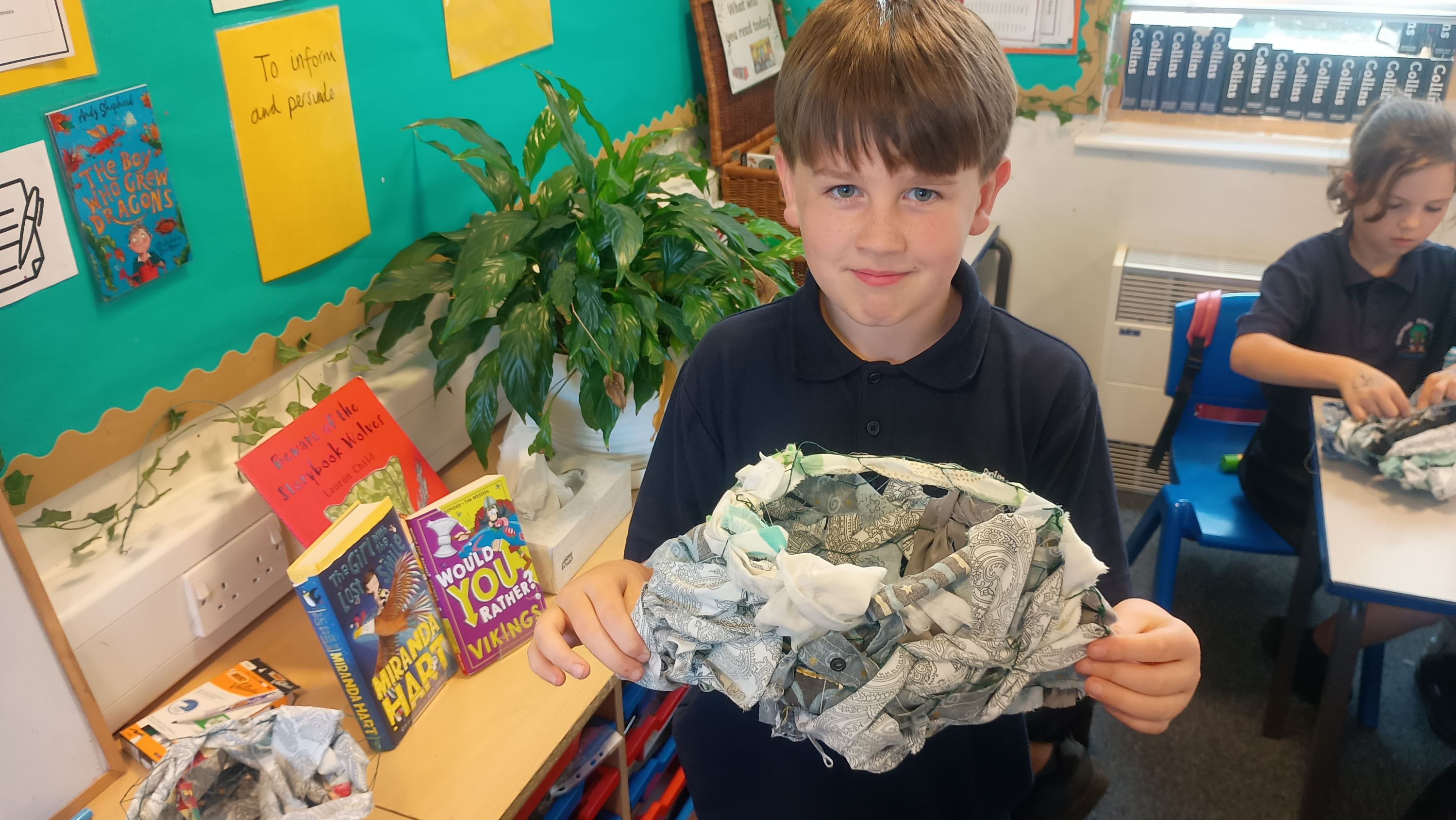 We have been weaving in 2 and 3 dimensions, using paper initially then textiles to create dragon nests.